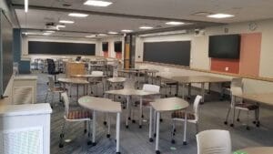 Mall space formerly filled with a department store is the perfect set up for a community college. Existing mall infrastructure can make college more accessible/convenient to the community. An urban mall is conveniently close to restaurants, shops, and fitness centers, making it more appealing for students. There is also plenty of space for parking for students driving to school. The open floor plan of a mall can create the opportunity for students to collaborate. Although it allows for an opportunity to create separate learning rooms with your own twist to inspire learning.